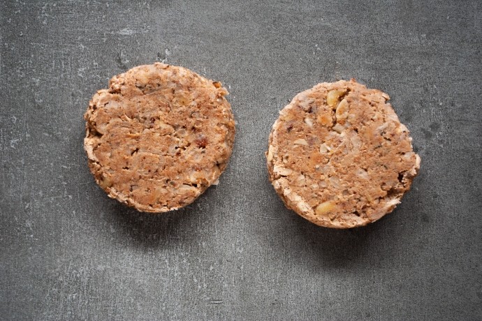 40% Chopped NUTS, (Hazel,Pecan,cashew),Onions,Tomato puree, vegetable extract, Mixed herbs,Wolemeal bread WHEAT, water.